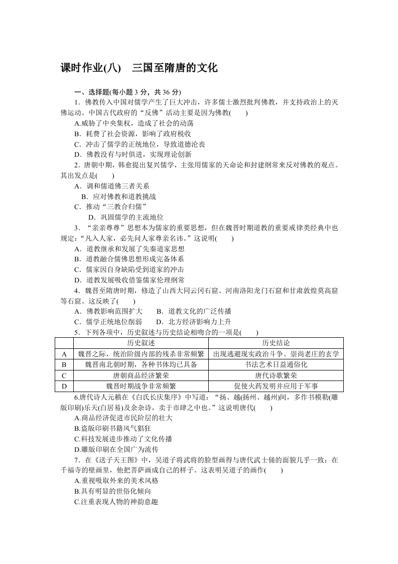 历史必修中外历史纲要(上)课时作业(八)