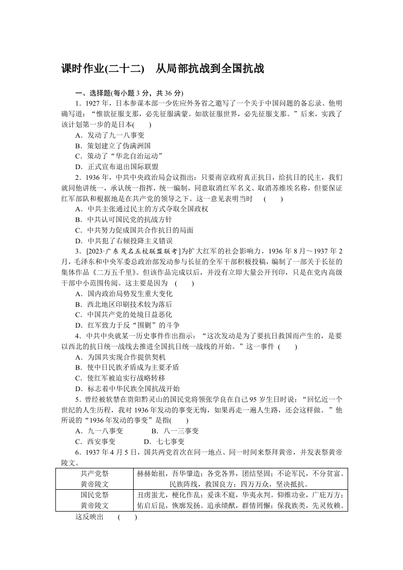 首页高中历史高一历史必修中外历史纲要(上)课时作业(二十二)