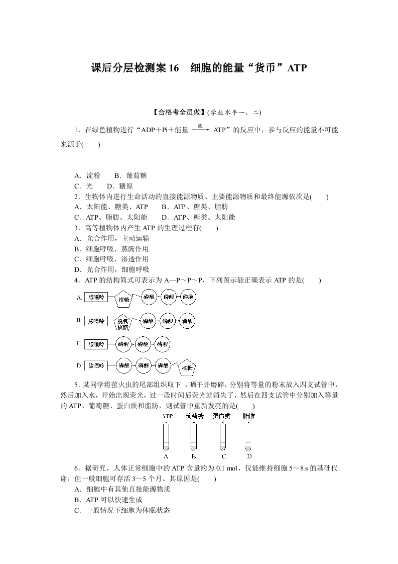 首页高中生物高一2025年高中生物必修1课后分层检测案16