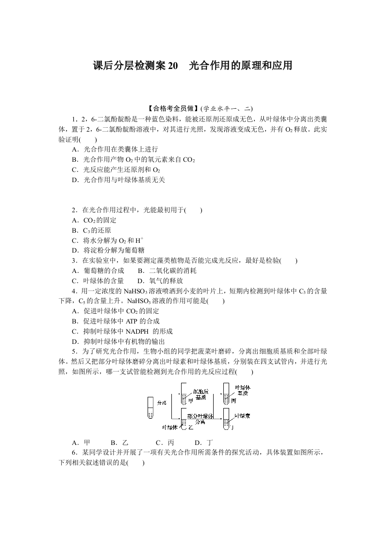 首页高中生物高一2025年高中生物必修1课后分层检测案20