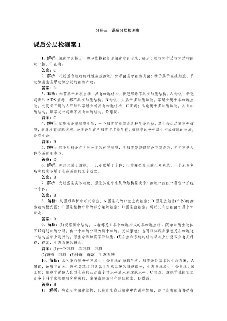 2025年高中生物必修1课后分层检测案·详解答案·单选