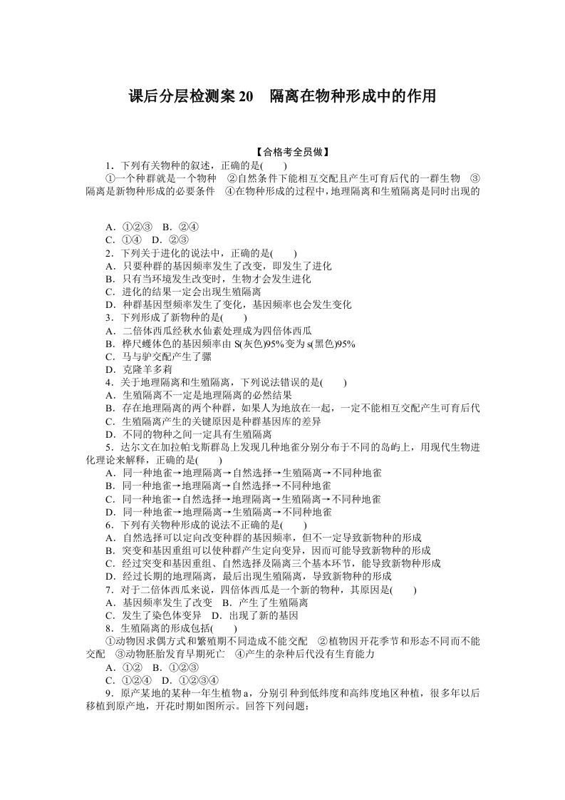 首页高中生物高二2025年高中生物必修2课后分层检测案20