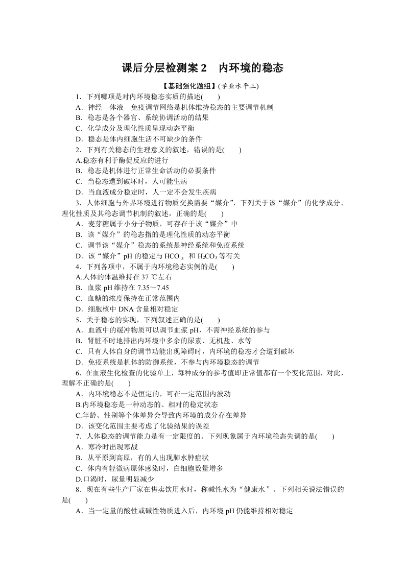 首页高中生物高一2025年高中生物选择性必修1课后分层检测案2