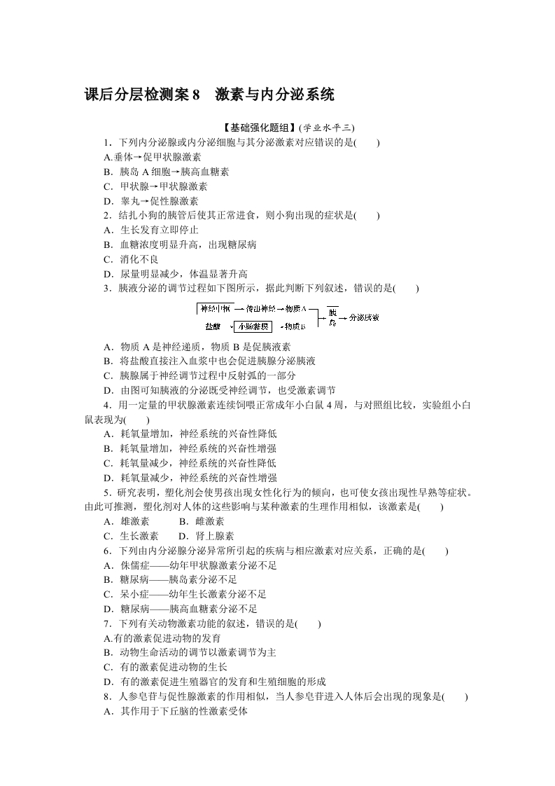首页高中生物高一2025年高中生物选择性必修1课后分层检测案8