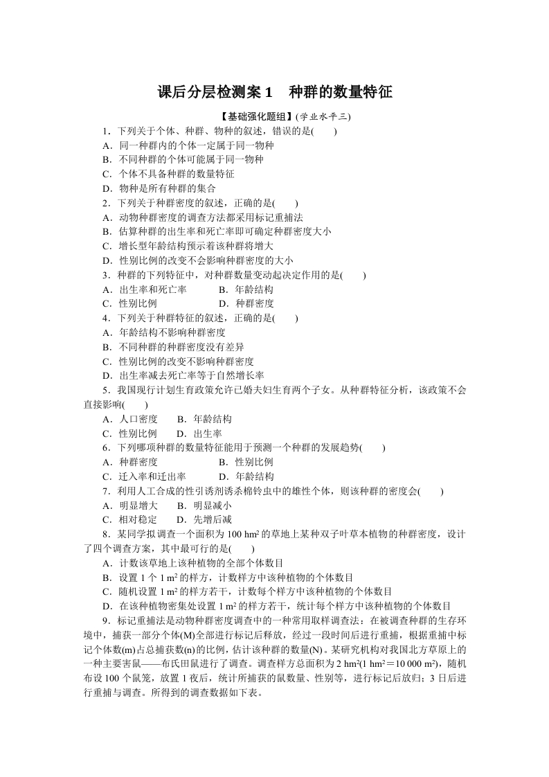 首页高中生物高二2025年高中生物选择性必修2课后分层检测案1