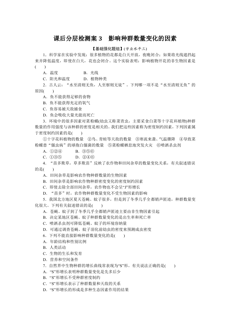 首页高中生物高二2025年高中生物选择性必修2课后分层检测案3