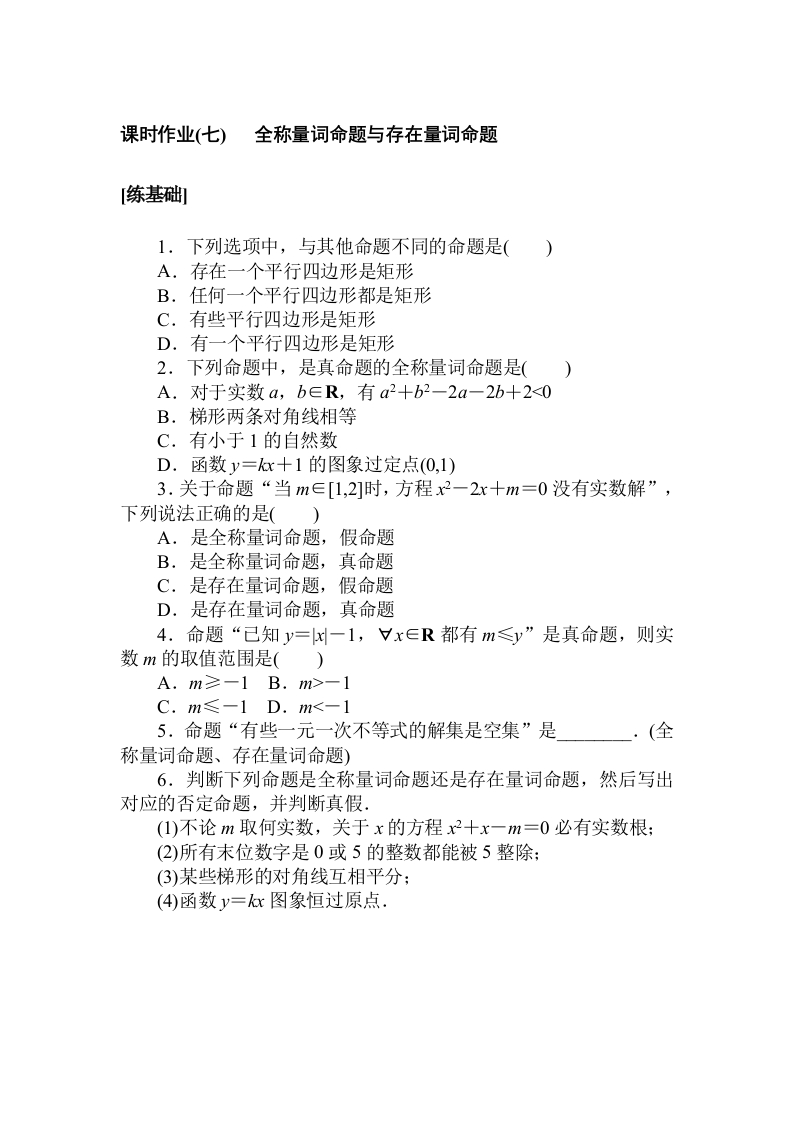 北师大版数学必修第一册课时作业(七)