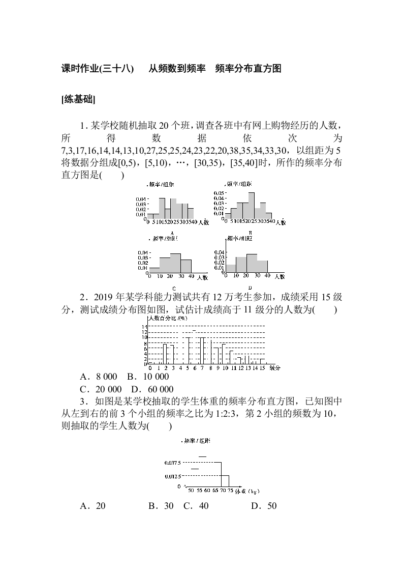 北师大版数学必修第一册课时作业(三十八)