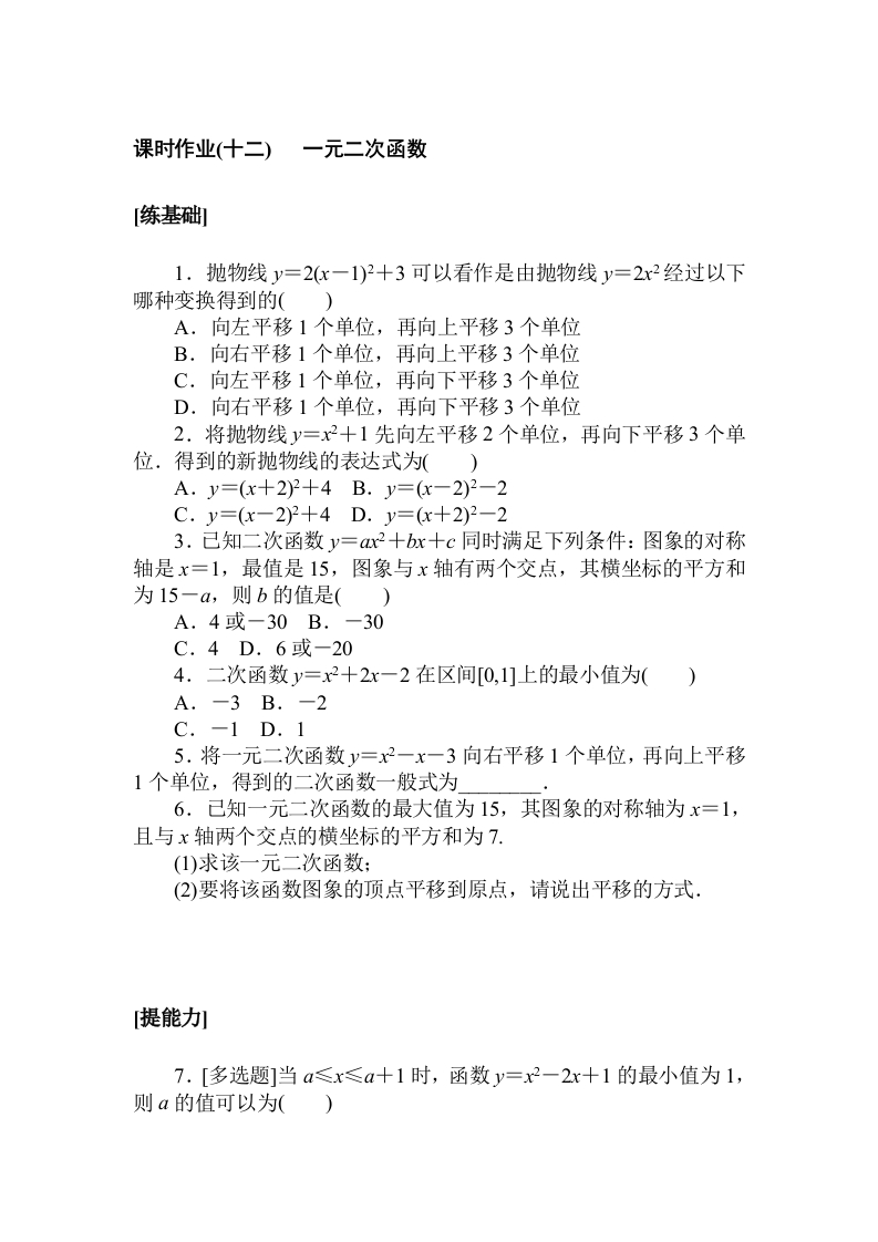 首页高中数学高一北师大版数学必修第一册课时作业(十二)