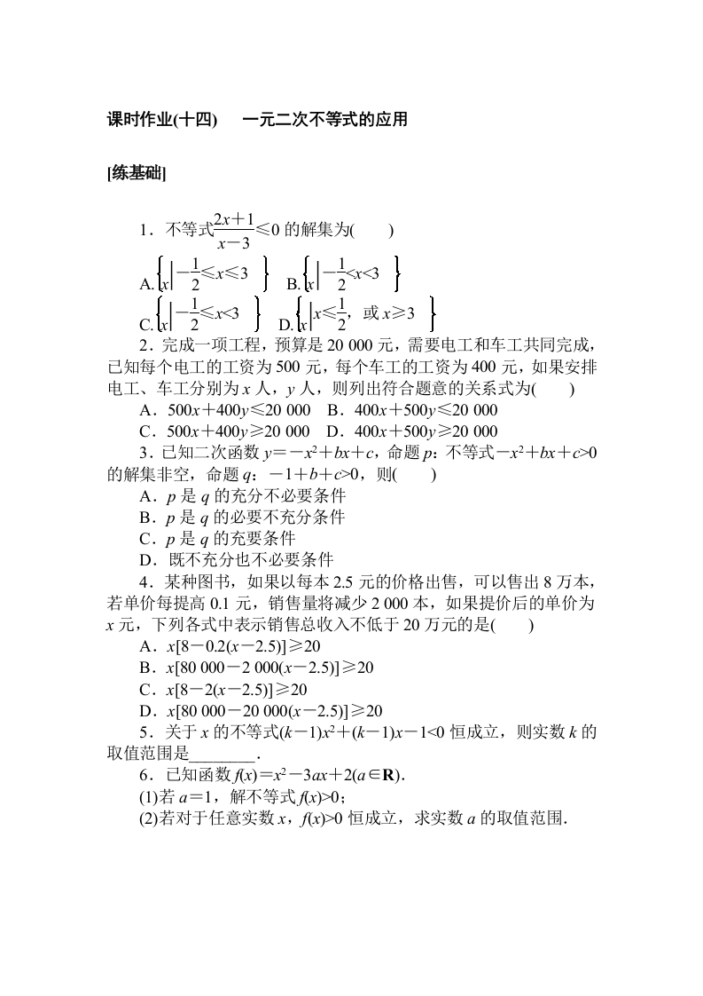 首页高中数学高一北师大版数学必修第一册课时作业(十四)