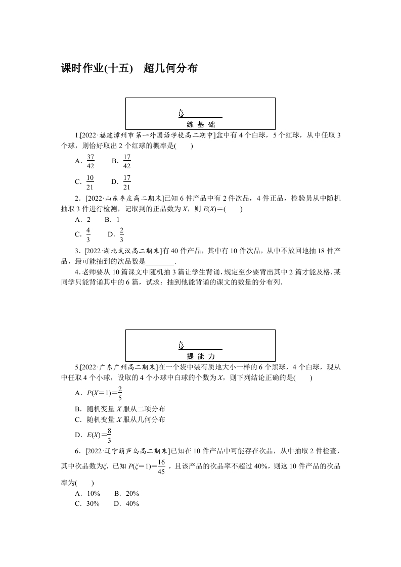 首页高中数学高三人教A版数学选择性必修第三册课时作业(十五)