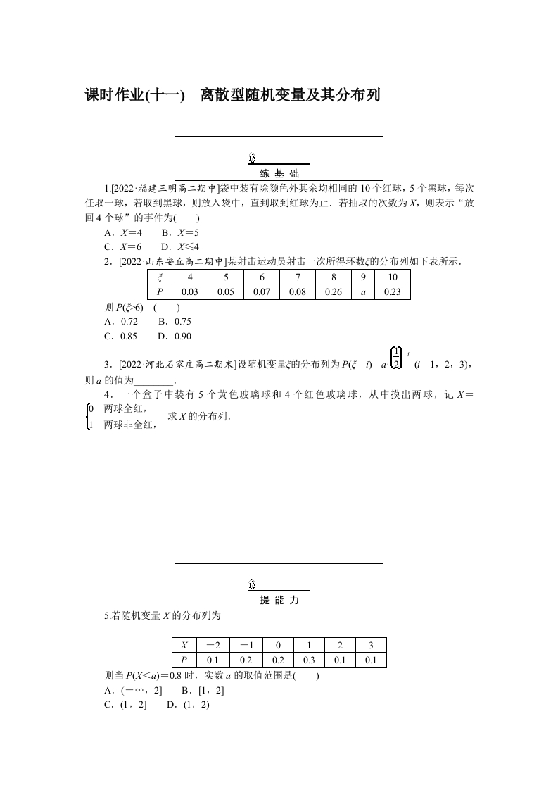 首页高中数学高三人教A版数学选择性必修第三册课时作业(十一)