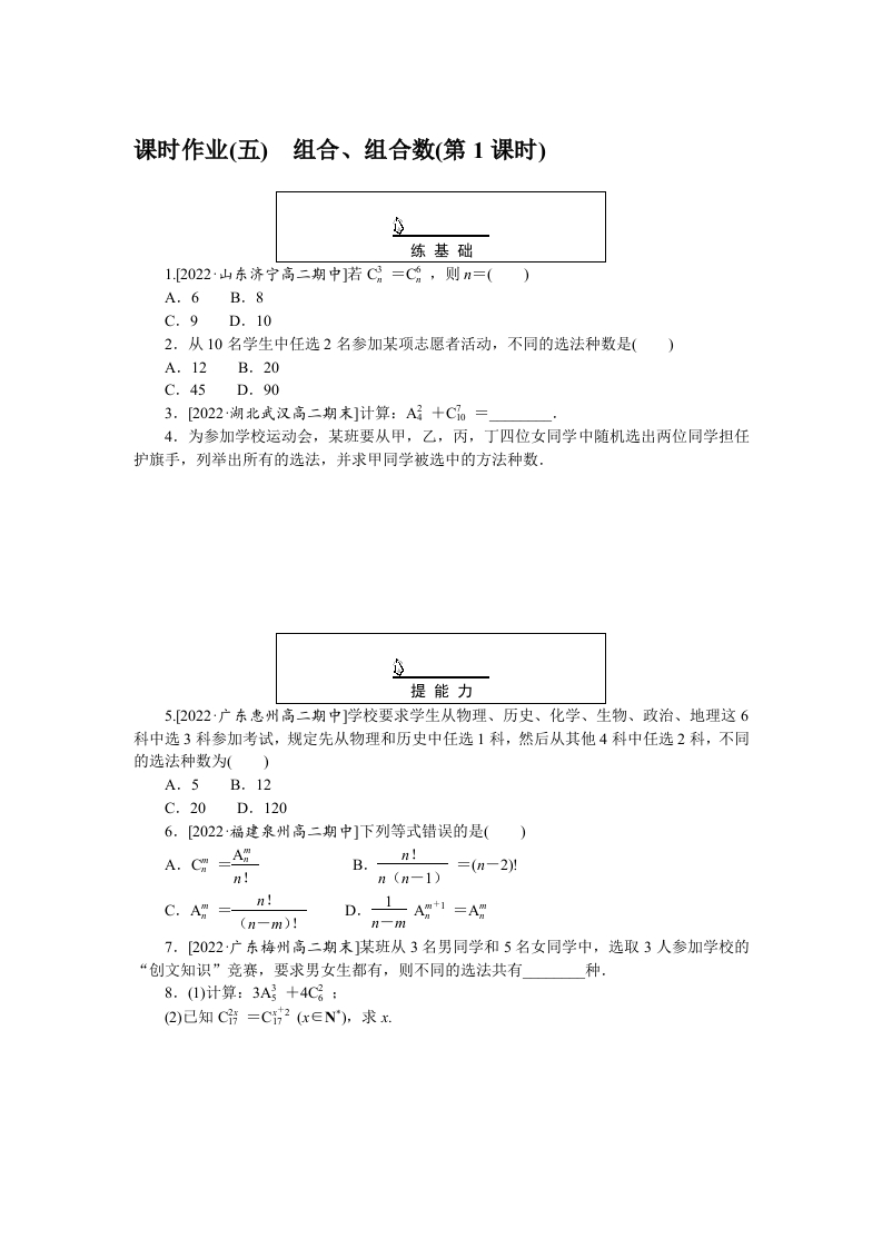 首页高中数学高三人教A版数学选择性必修第三册课时作业(五)