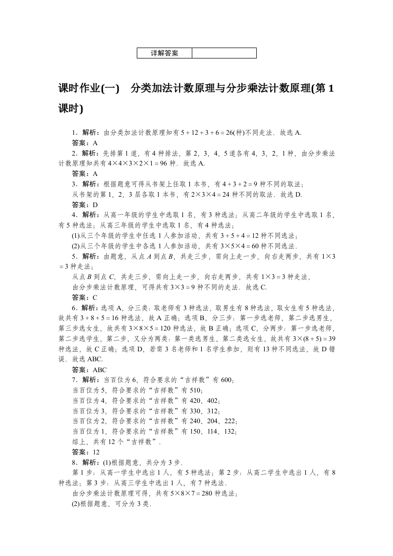 人教A版数学选择性必修第三册详解答案
