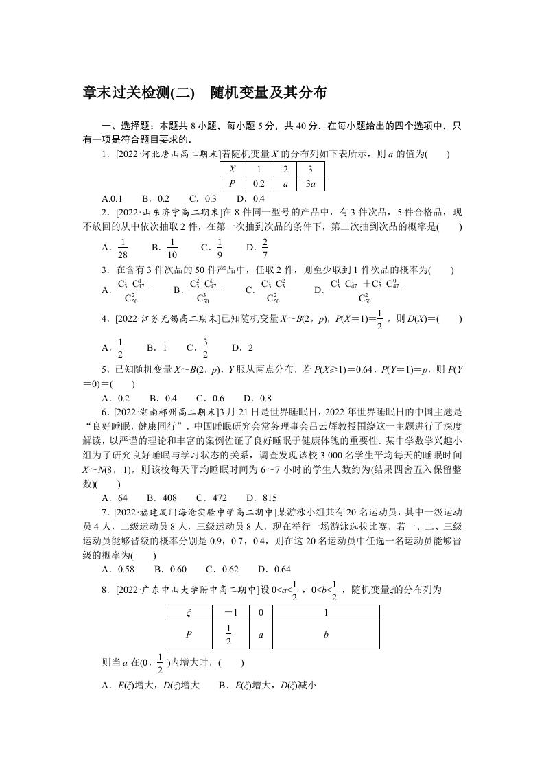 首页高中数学高三人教A版数学选择性必修第三册章末过关检测(二)