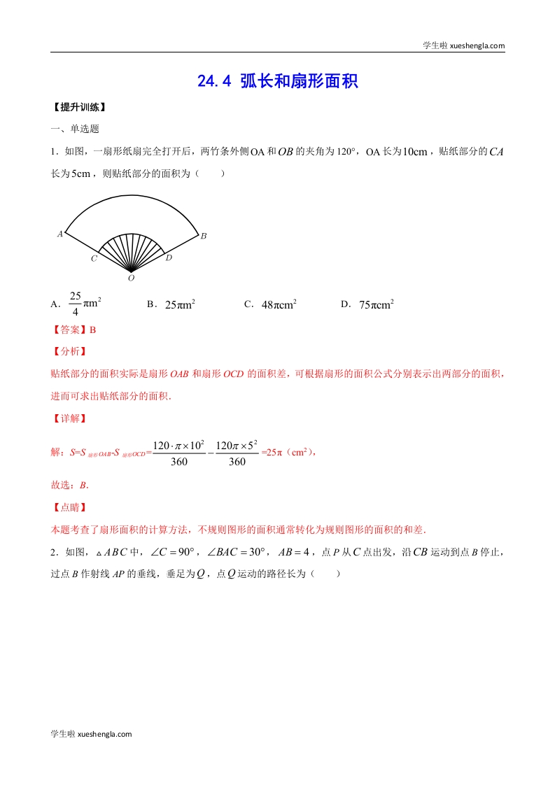 首页初中数学九年级人教版初中九年级数学24.4 弧长和扇形面积(提升训练)(解析版)