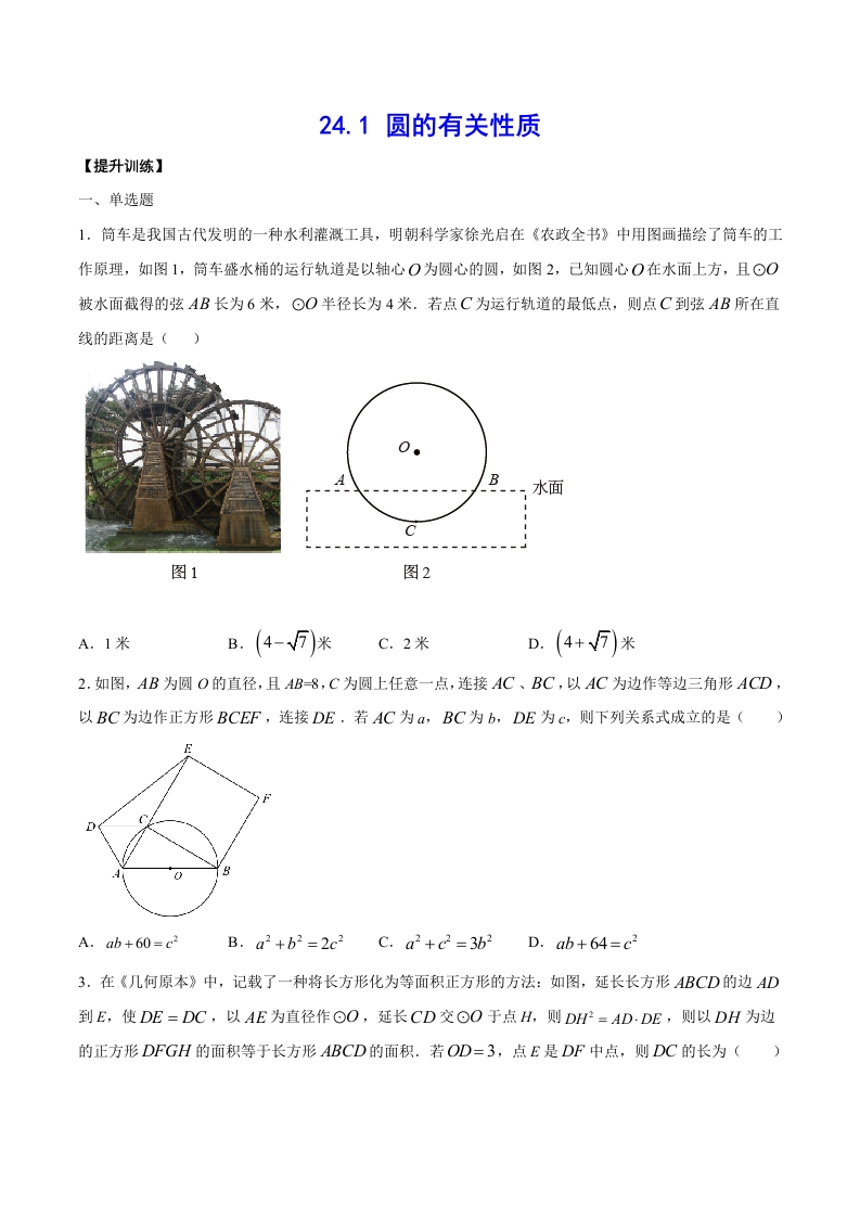 人教版初中九年级数学24.1 圆的有关性质(提升训练)(原卷版)