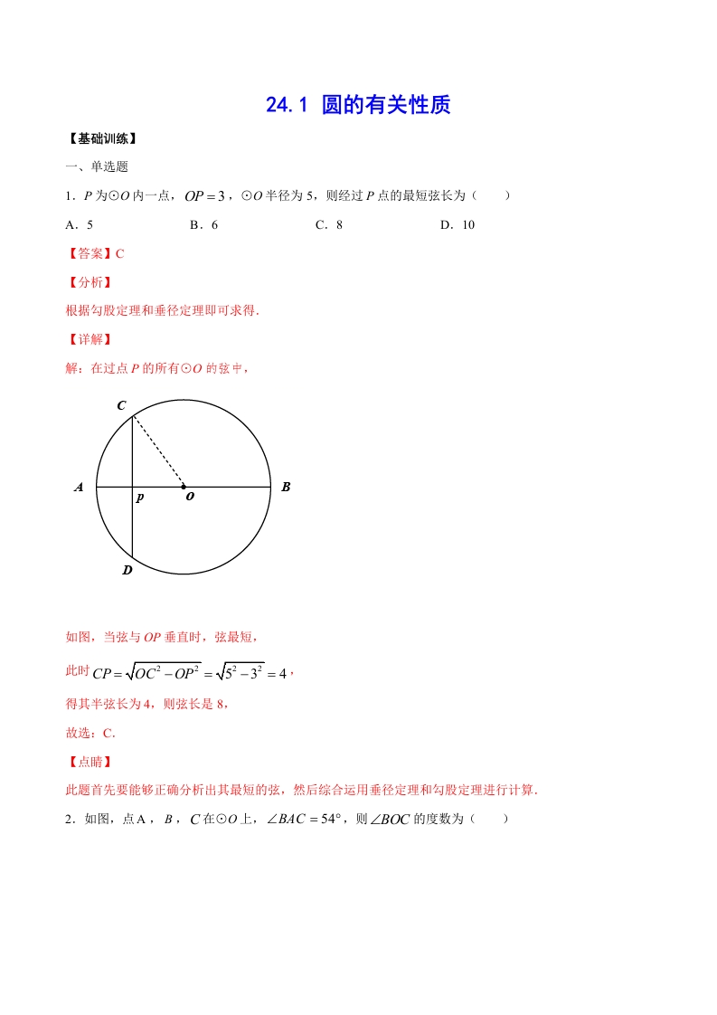 人教版初中九年级数学24.1 圆的有关性质(基础训练)(解析版)