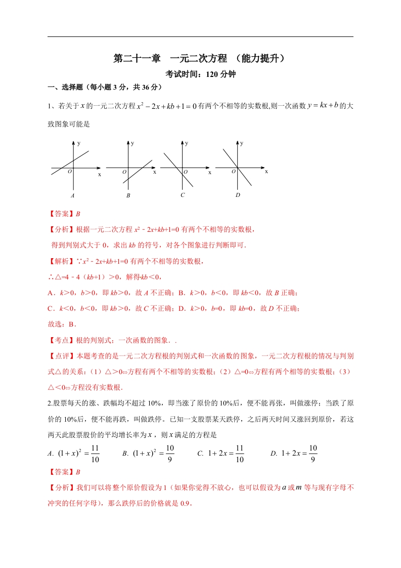 首页初中数学九年级人教版初中九年级数学第二十一章 一元二次方程(能力提升)(解析版)