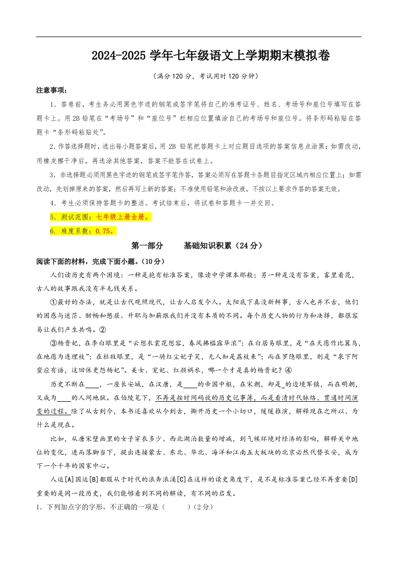 七年级语文期末模拟卷(全解全析)(五四制通用)