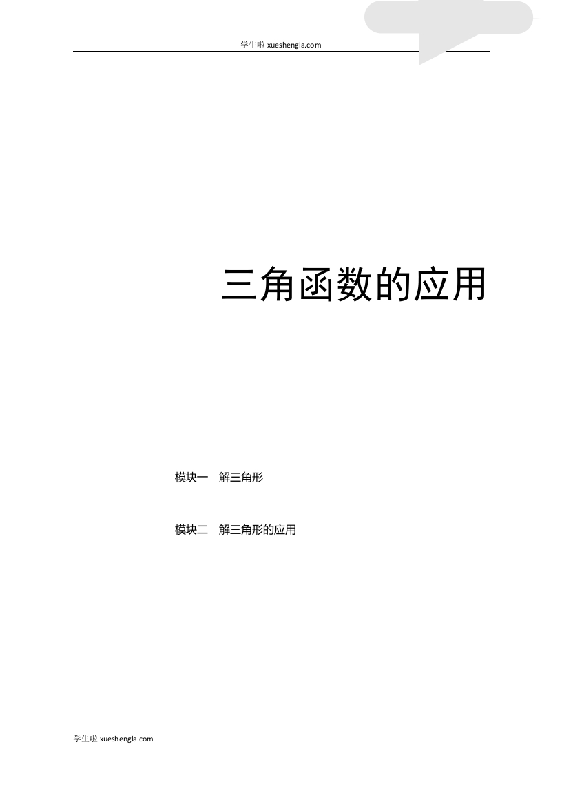 学生啦:学生啦xueshengla..com三角函数的应用模块一解三角形模块二解三角形的应用学生啦xueshengla.corm