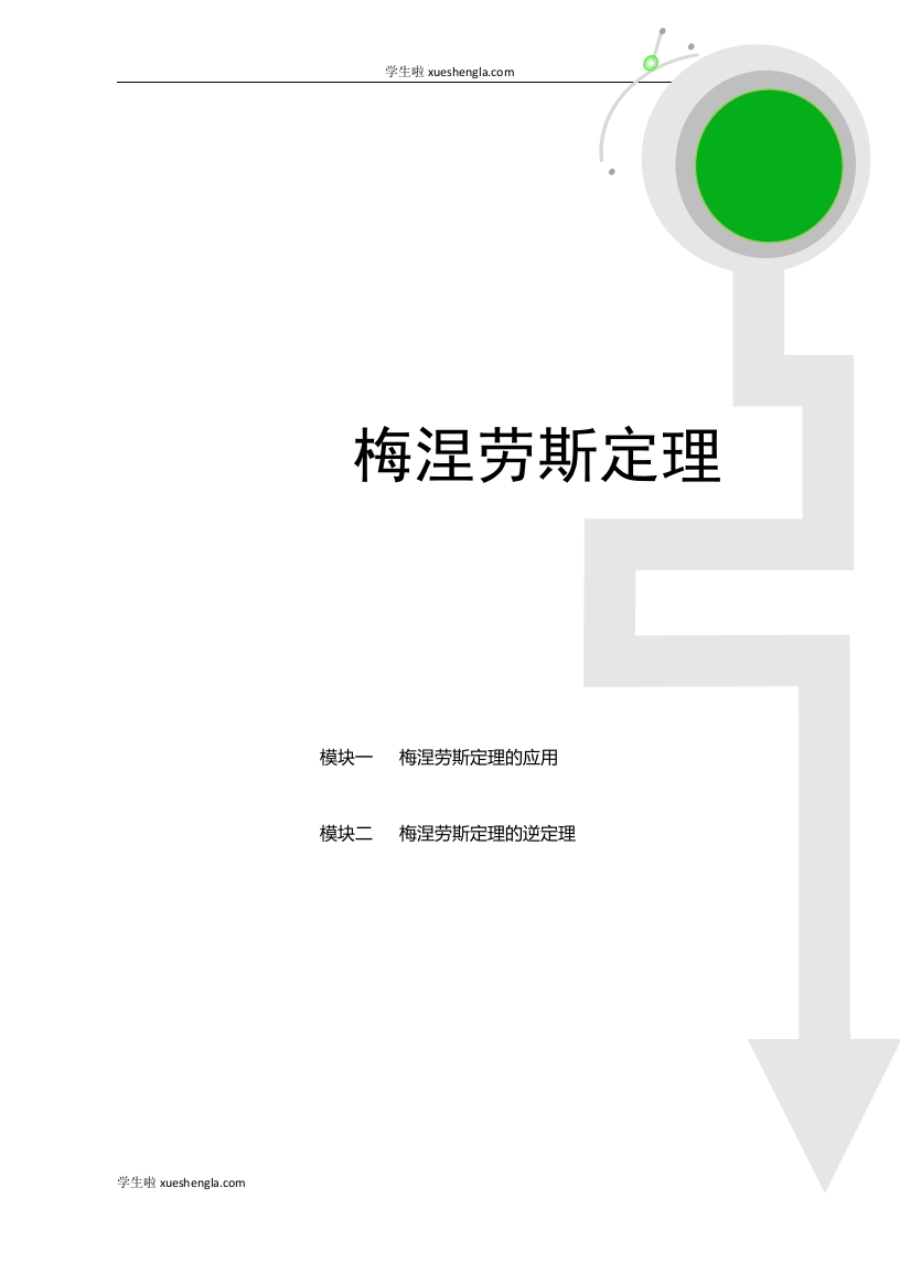 学生啦:学生啦xueshengla..com梅涅劳斯定理模块一梅涅劳斯定理的应用模块二梅涅劳斯定理的逆定理学生啦xueshengla..com